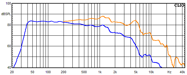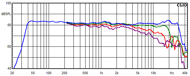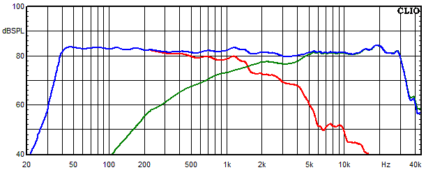 • Blau = Summe aus Hochtöner, Mitteltöner und Tieftöner auf Achse gemessen