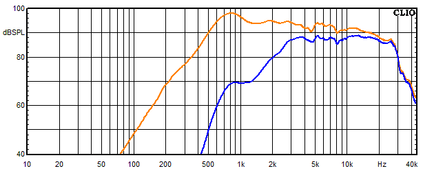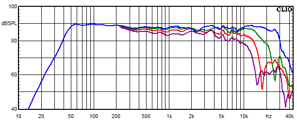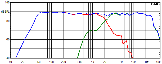 - Blau = Summe aus Hochtöner, Mitteltöner und Tieftöner auf Achse gemessen