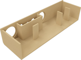 Nun kann die Rückwandhalterung in das Gehäuse eingeklebt werden. Danach kann das Dichtband auf die Rückwandhalterung geklebt werden. Es verhindert, das Austreten der Luft aus dem geschlossenen Gehäuse.