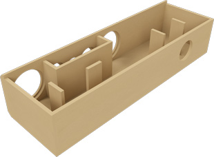 Das Gehäuse ist nun fertig zusammengebaut. Jetzt können alle Flächen geschliffen werden und der gewünschte Lack bzw. das Furnier wird aufgebracht.