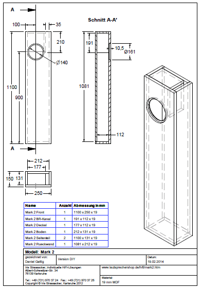 Mark 2 ist ein flacher nur 15 cm tiefer Standlautsprecher, der leicht in jeden Raum integriert werden kann. Er ist mit einem Mark Audio-Breitbandlautsprecher Alpair 10 ausgestattet.