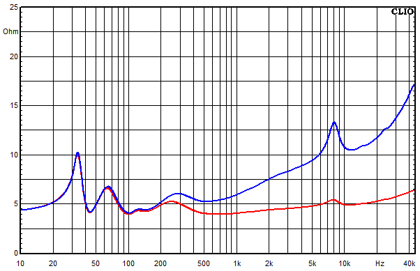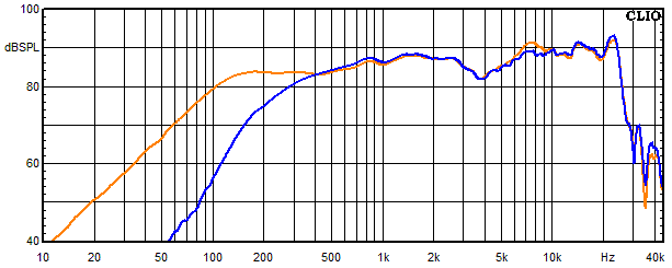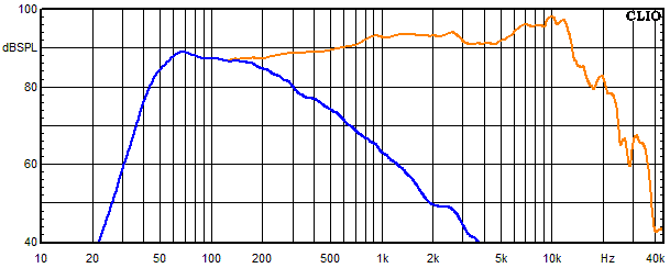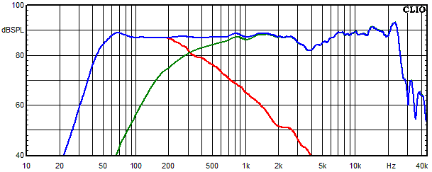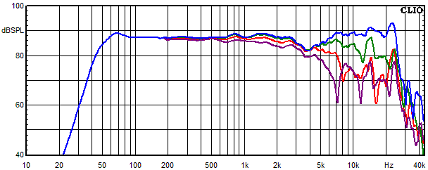 - Blau = Summe aus Breitbänder und Tieftöner auf Achse gemessen