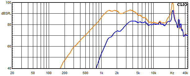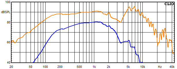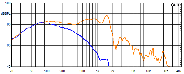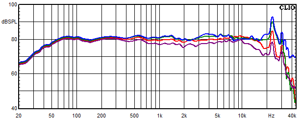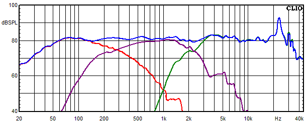 - Blau = Summe aus Hochtöner, Mitteltöner und Tieftöner auf Achse gemessen