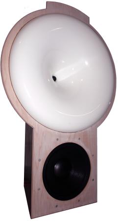 For mid and high frequencies the Audaphon horn H94-2 with 94 cm diameter is employed. The horn is driven by a Faital HF 200.