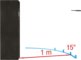 Für die Messung unter Winkel wird das Mikrofon nach der Messung auf Achse (0°) aus Sicht des Lautsprechers in 15° Schritten horizontal verschoben.